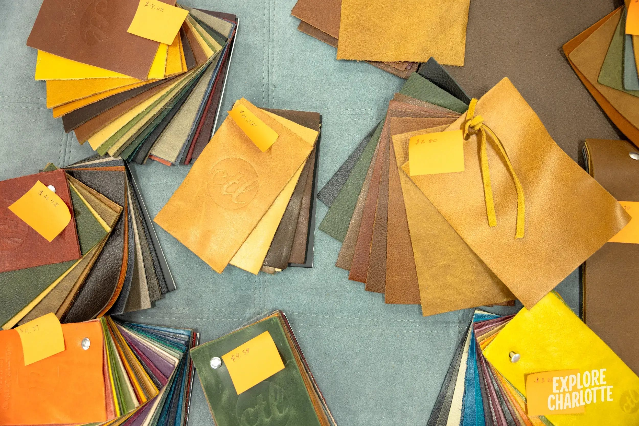 A curated selection of top-quality leathers and fabrics is available for customization.